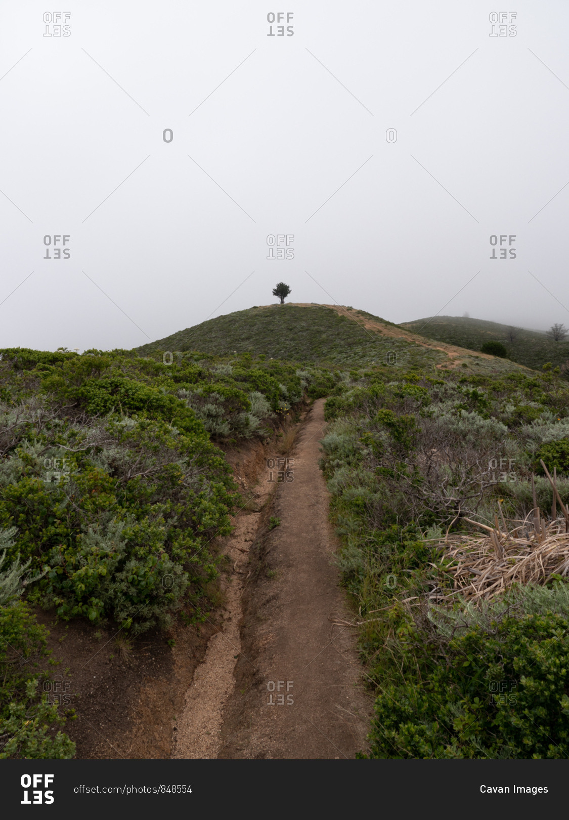 Hiking trail leading to lone tree on hill