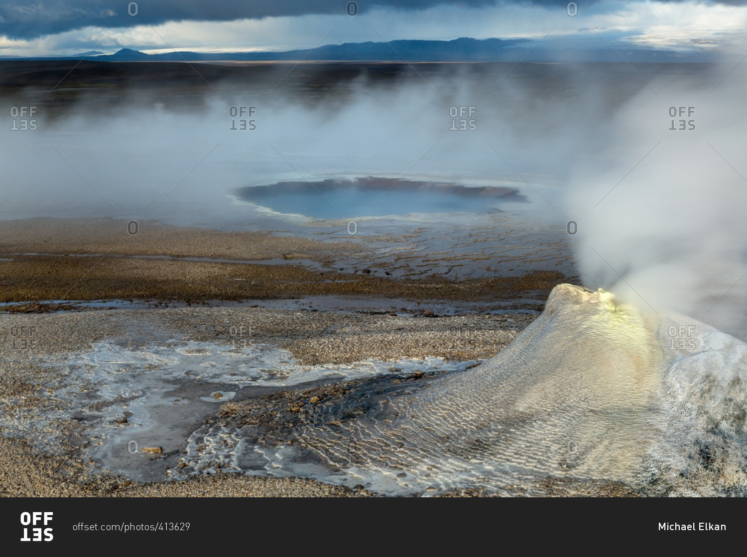Icelandic geothermal pool and fumarole in the remote Kjoslur highlands