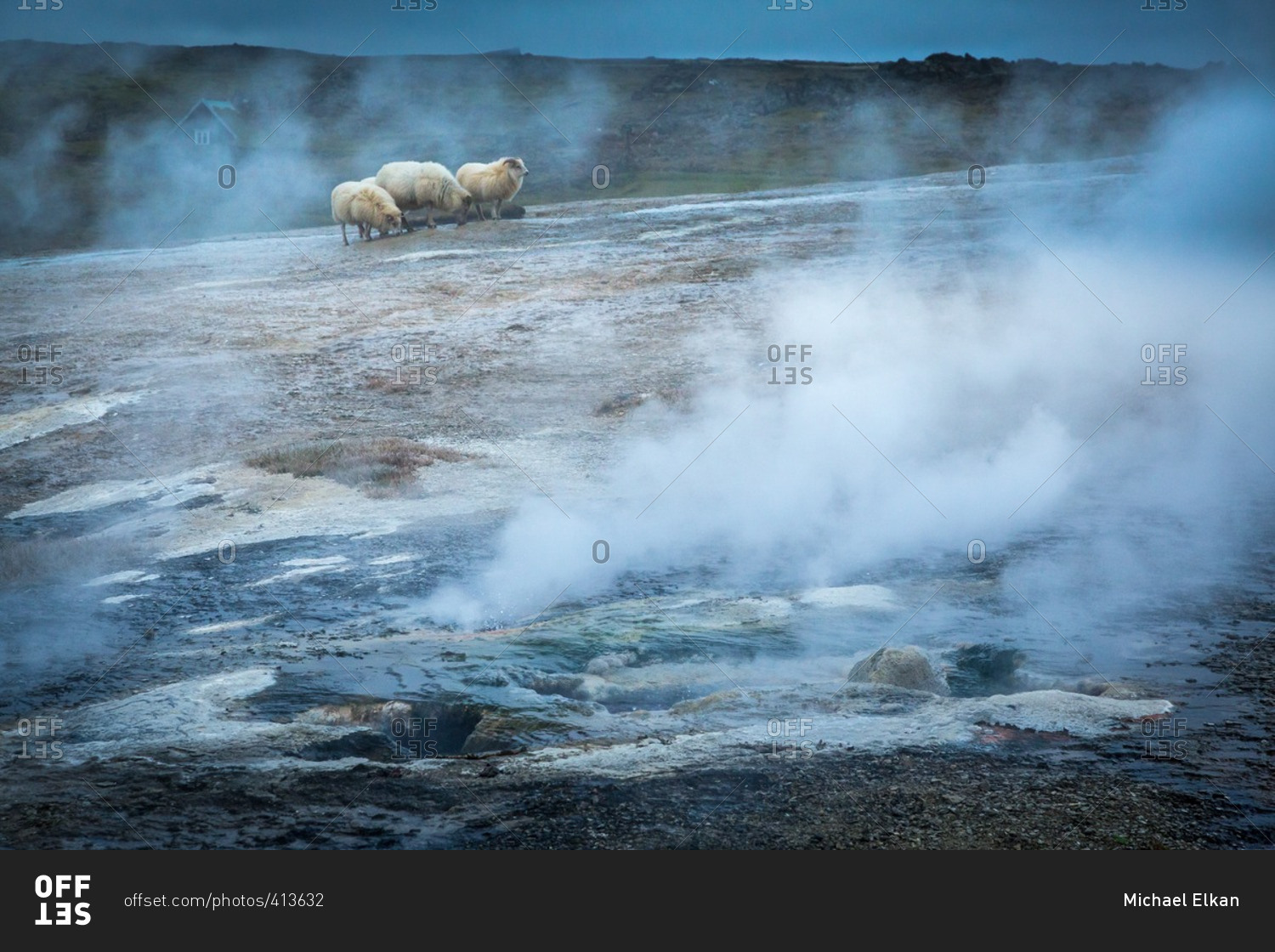 Icelandic sheep at geothermal location in the remote Kjoslur highlands