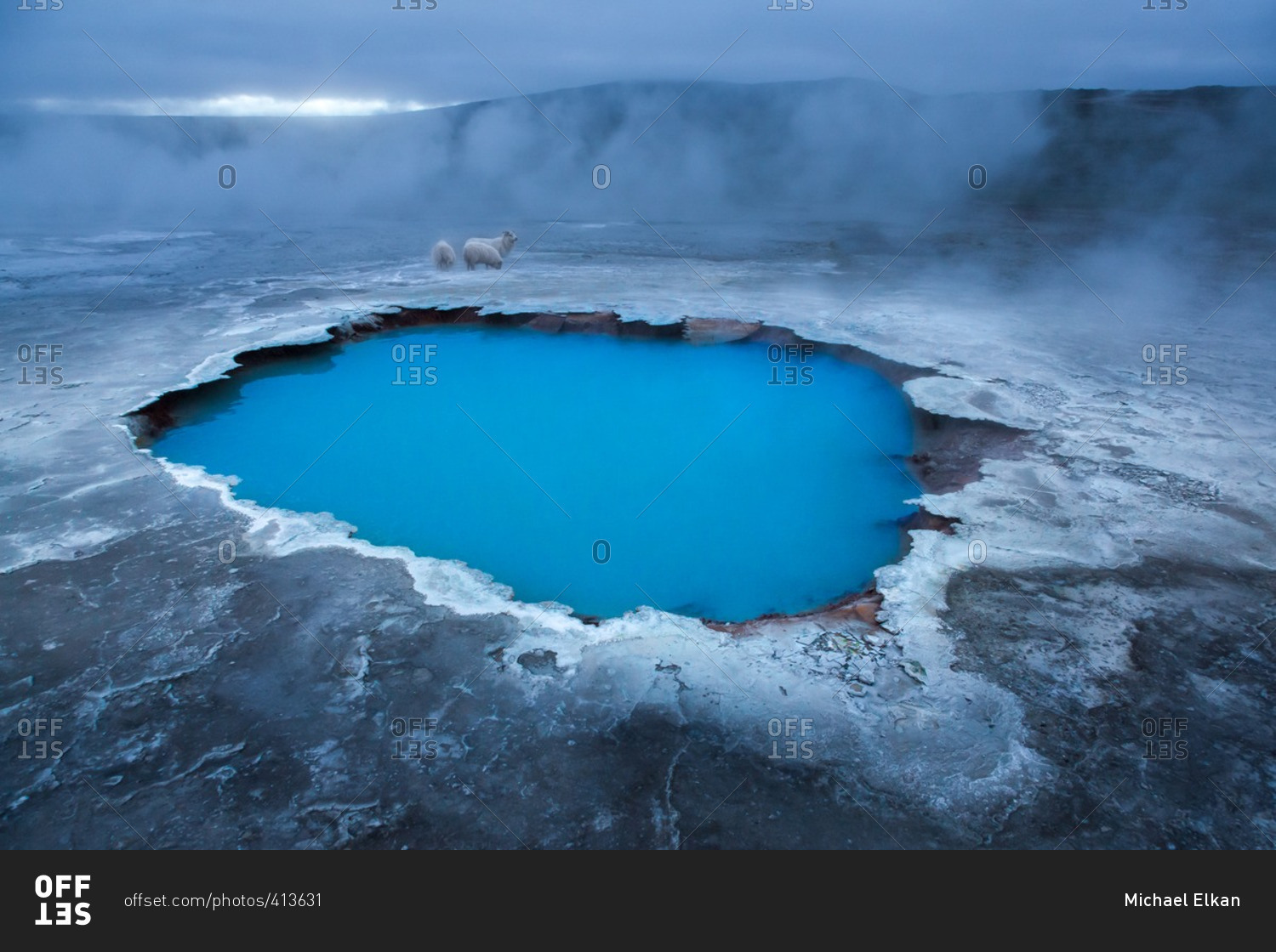 Icelandic sheep at geothermal pool in the remote Kjoslur highlands