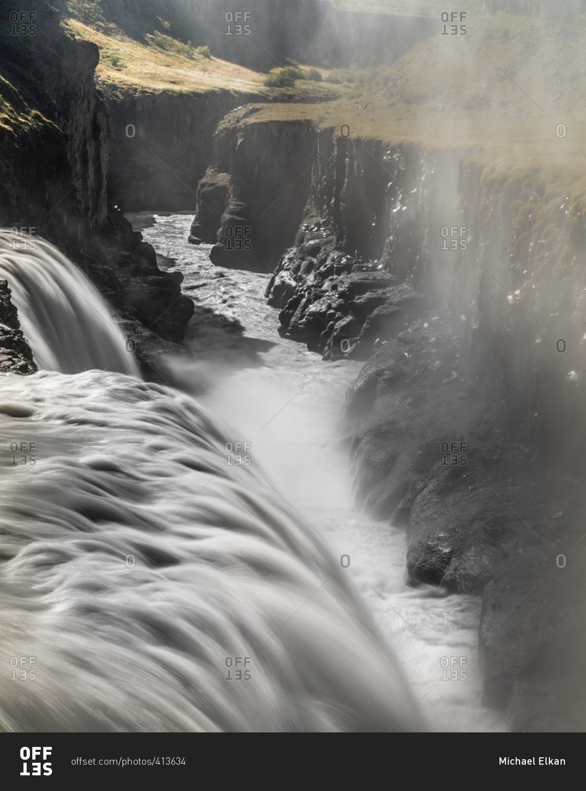 Icelandic waterfall plunging into ravine at Gullfoss