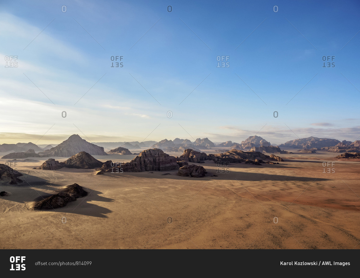 Landscape of Wadi Rum, aerial view from a balloon, Aqaba Governorate, Jordan