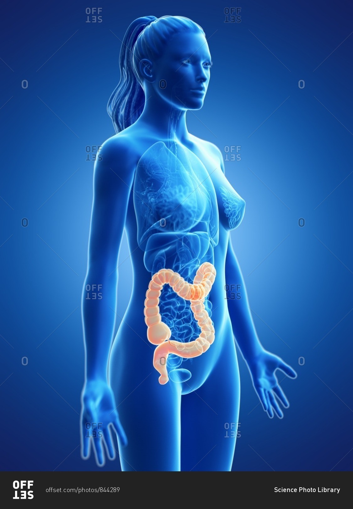 Large intestine, computer illustration.