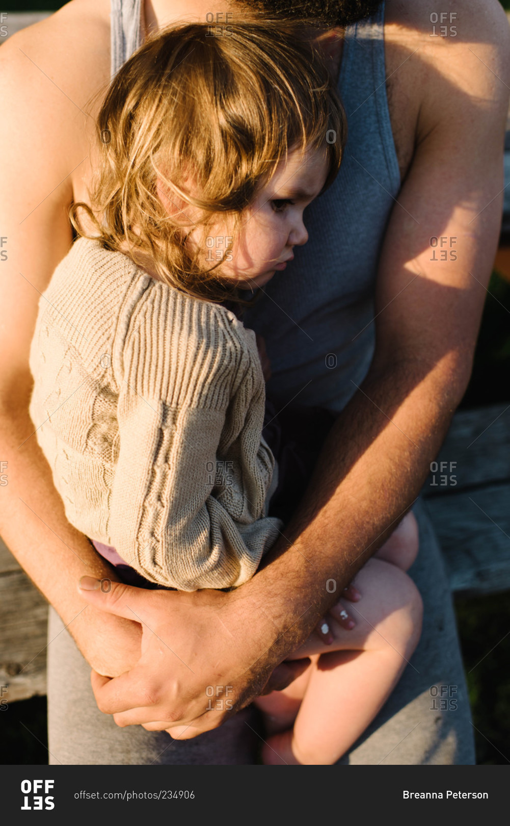 Little girl resting in her father's lap