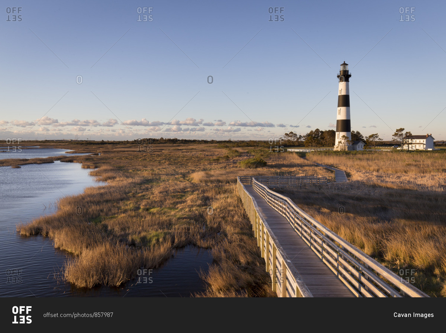 Marsh area and boardwalk surrounding the bodie island lighthouse