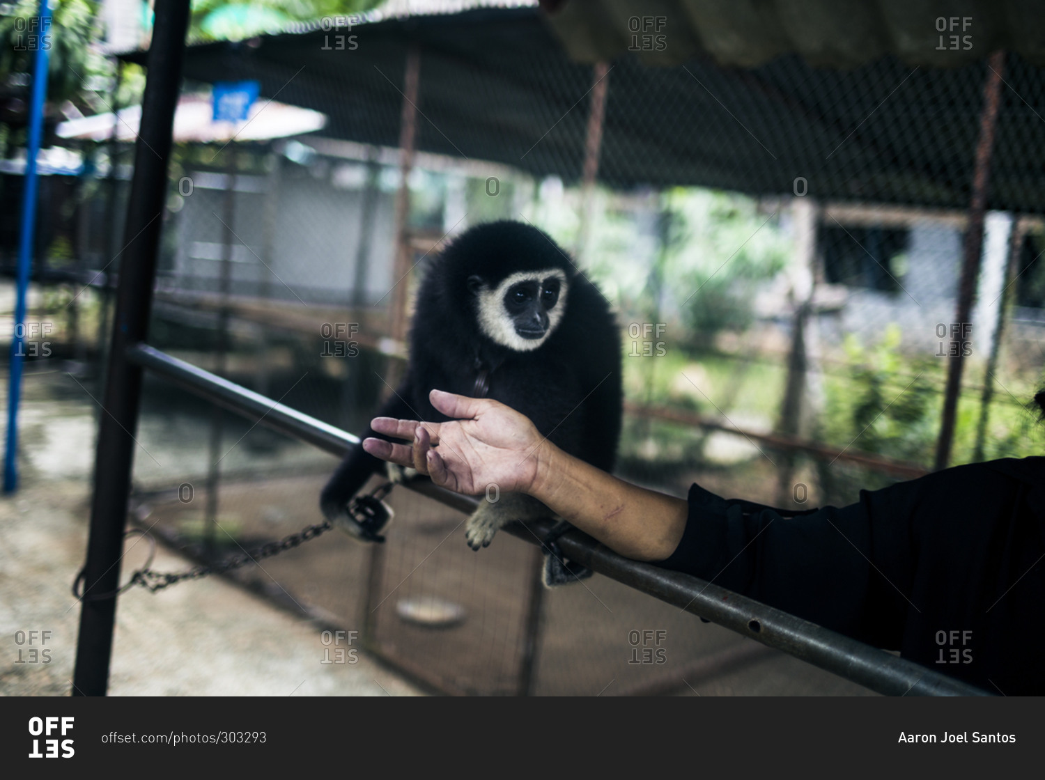 Monkey perched on person's arm