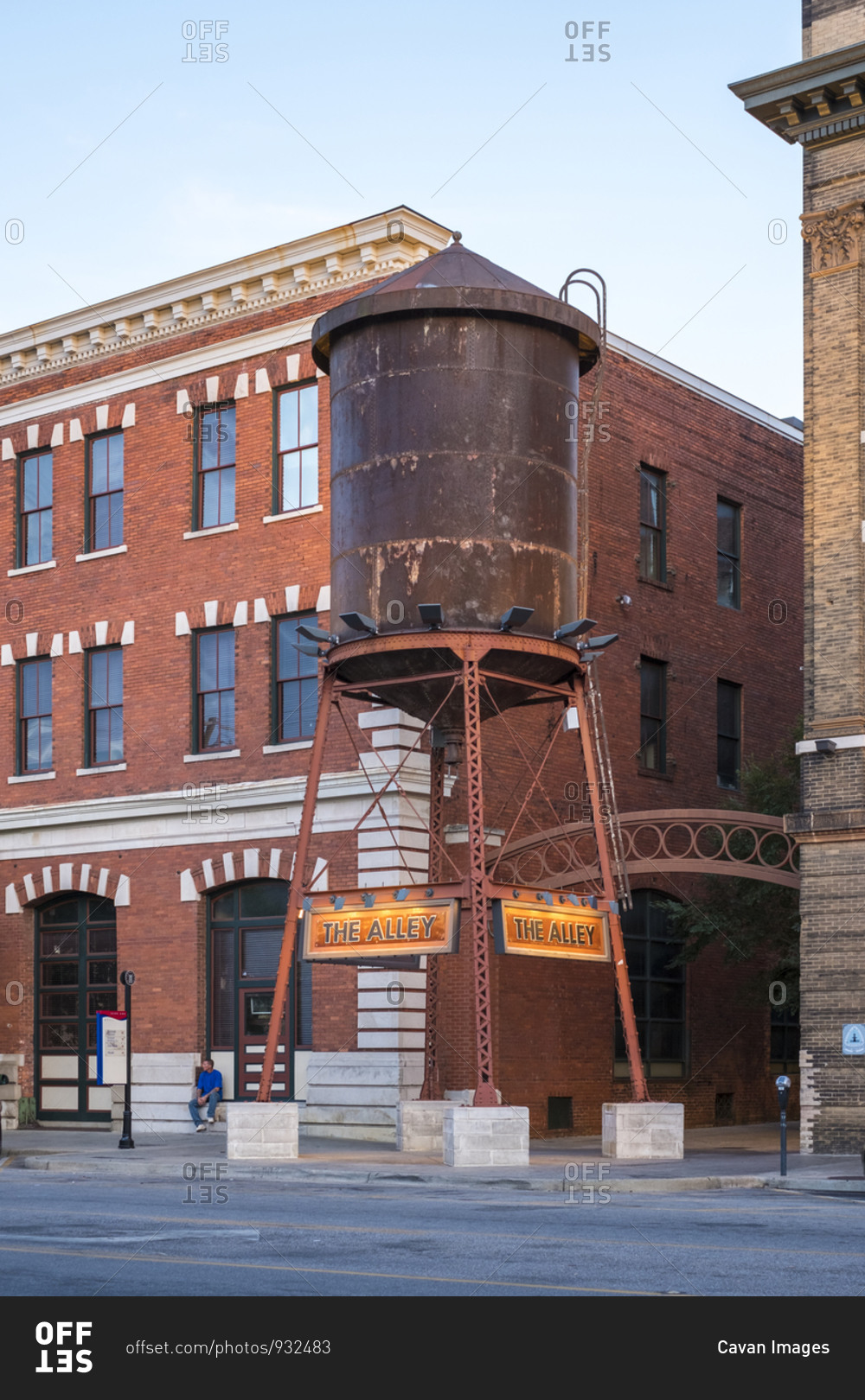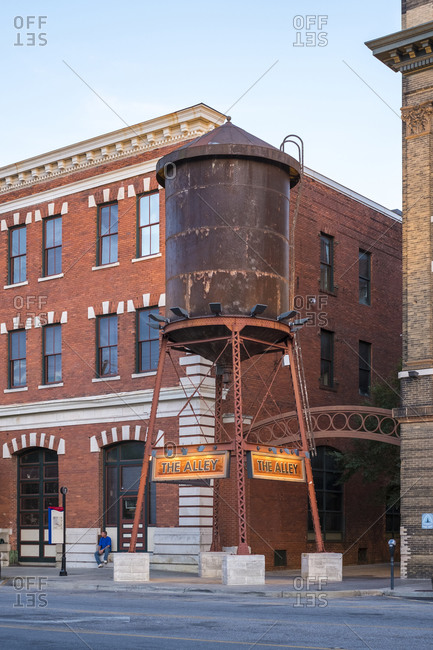 Montgomery, Alabama, United States - October 1, 2016: Historic buildings and water tower on Tallapoosa St. at dusk, Montgomery, Alabama, United States
