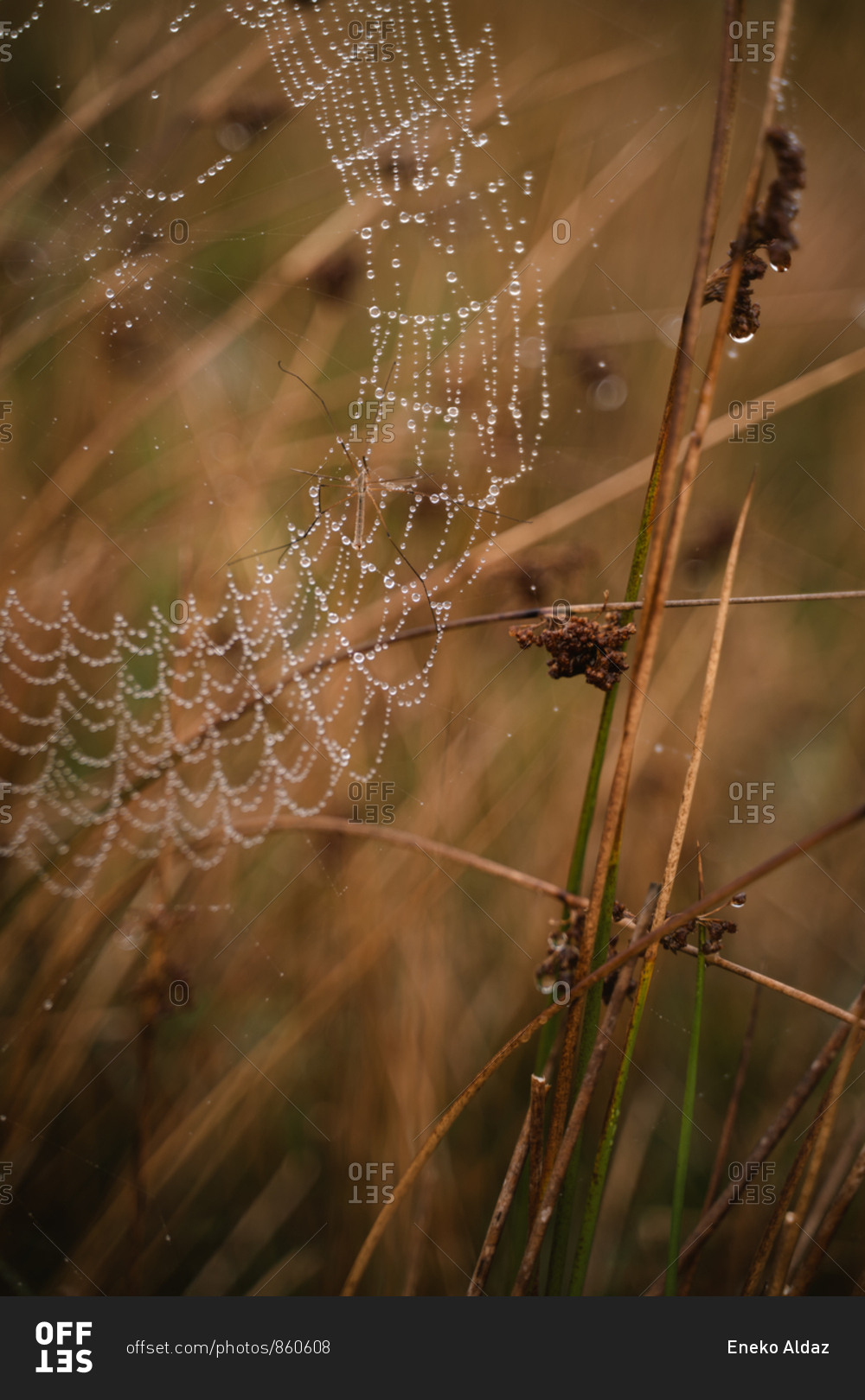 Morning dew trapped on a spider web