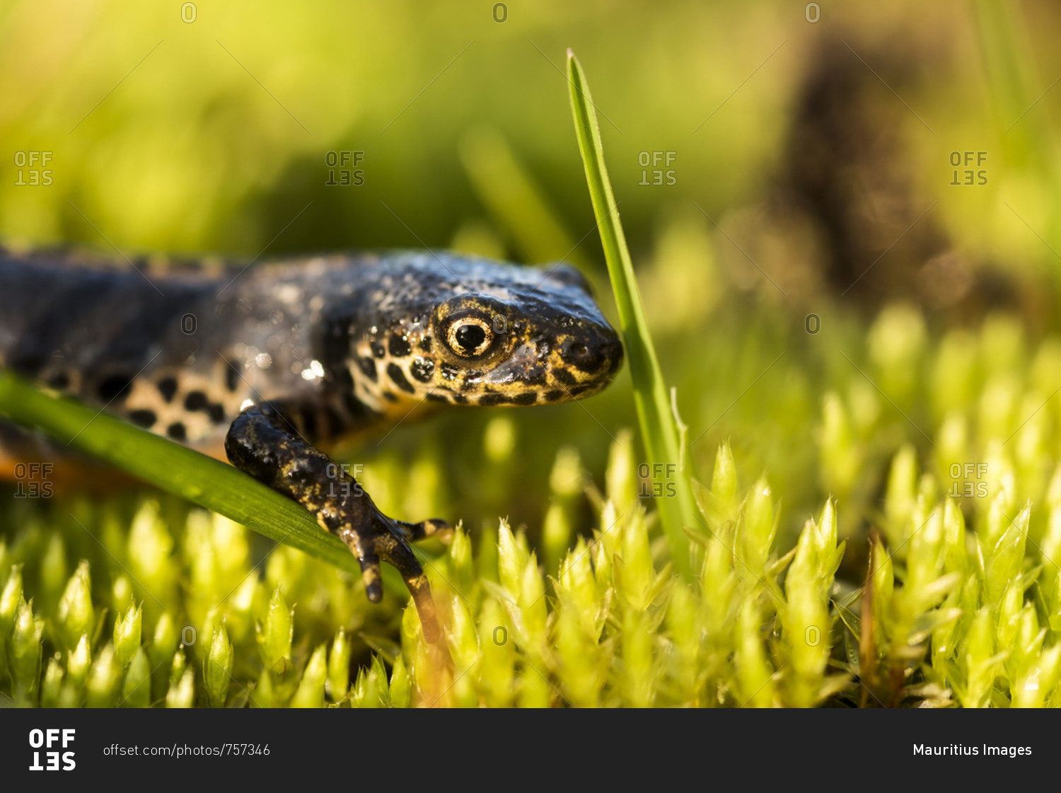 Mountain salamander between moss and grass
