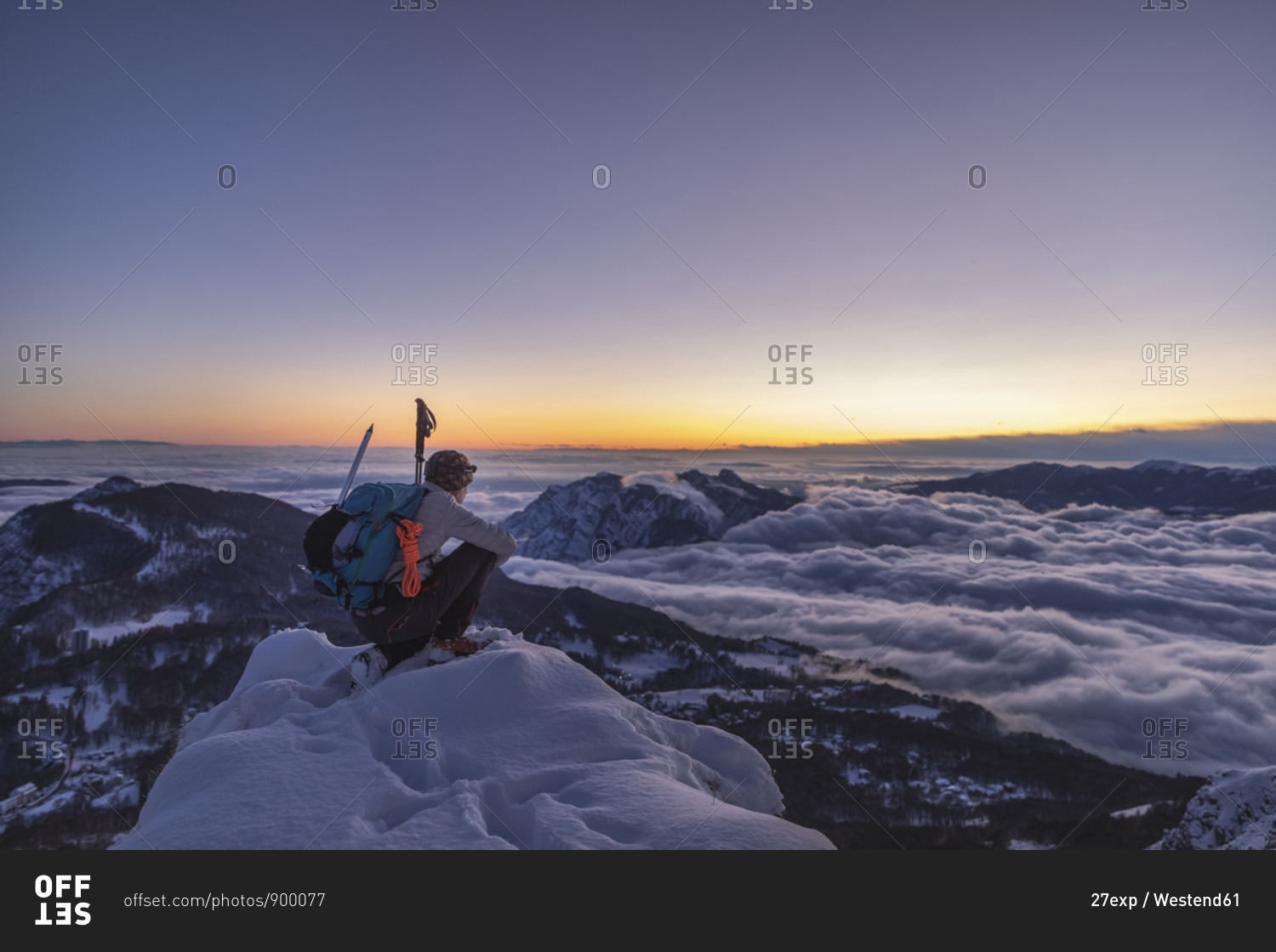 Mountaineer on the mountain summit during twilight- Orobie Alps- Lecco- Italy