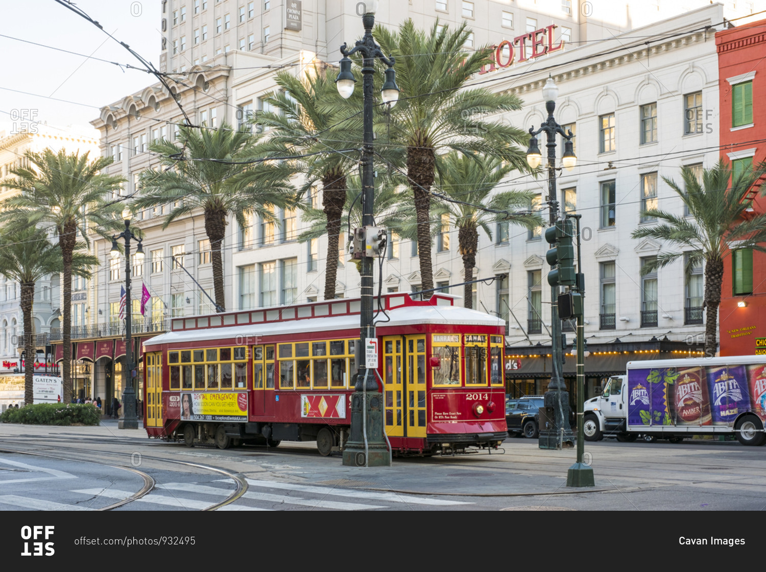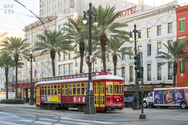 New Orleans, Louisiana, United States - October 13, 2016: Canal Street streetcar line in the French Quarter, New Orleans, Louisiana, United States