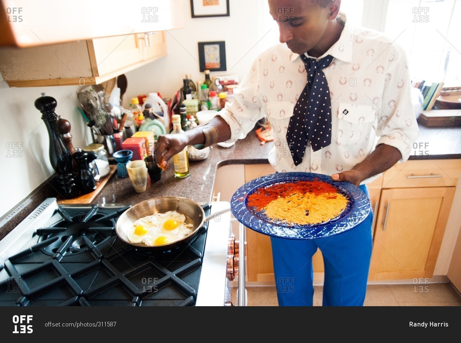New York City - August 21, 2012: Marcus Samuelson preparing breakfast at home