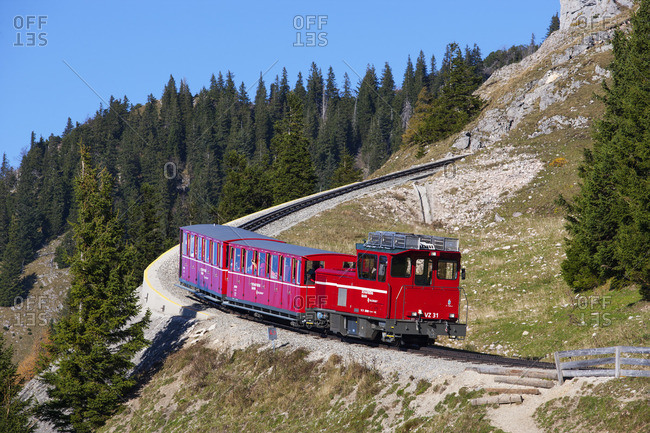 October 15, 2017: Austria, Salzkammergut, Saint Wolfgang, Schafberg, rack railway,
