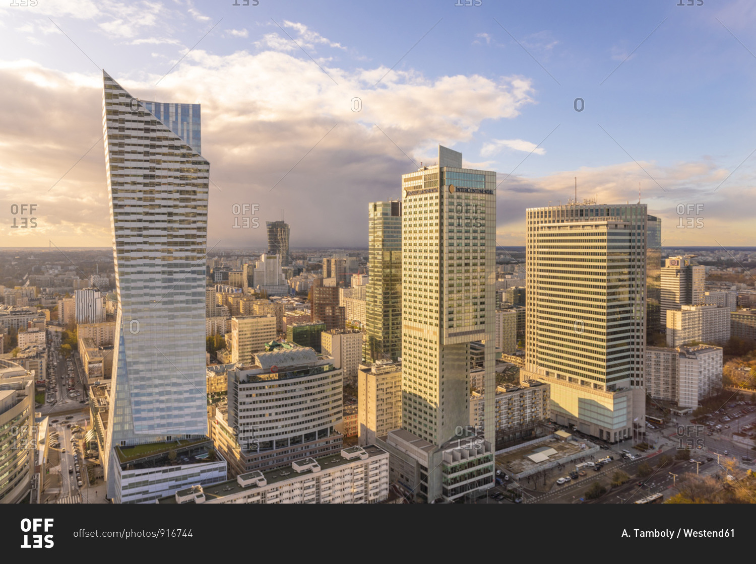 October 30, 2017: View to the city center from the Palace of Culture and Science at twilight- Warsaw- Poland