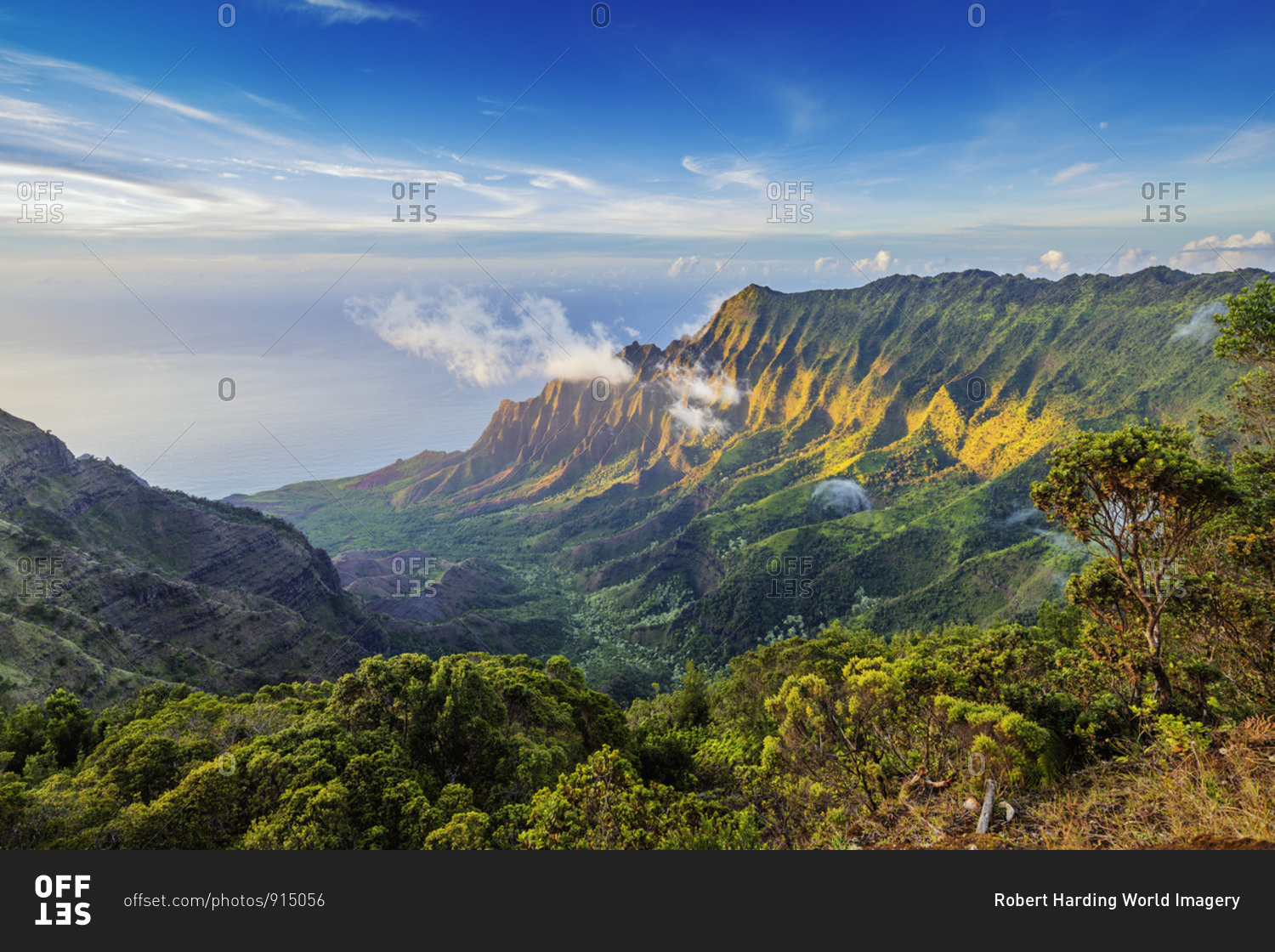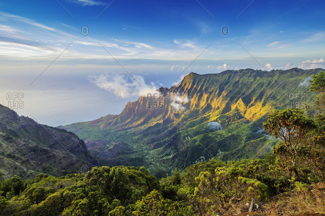Pali sea cliffs at Kalalau lookout, Napali coast, Kokee State Park, Kauai Island, Hawaii, United States of America, North America
