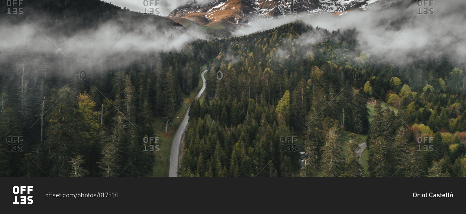 Panoramic view of foggy forest in the Pyrenees