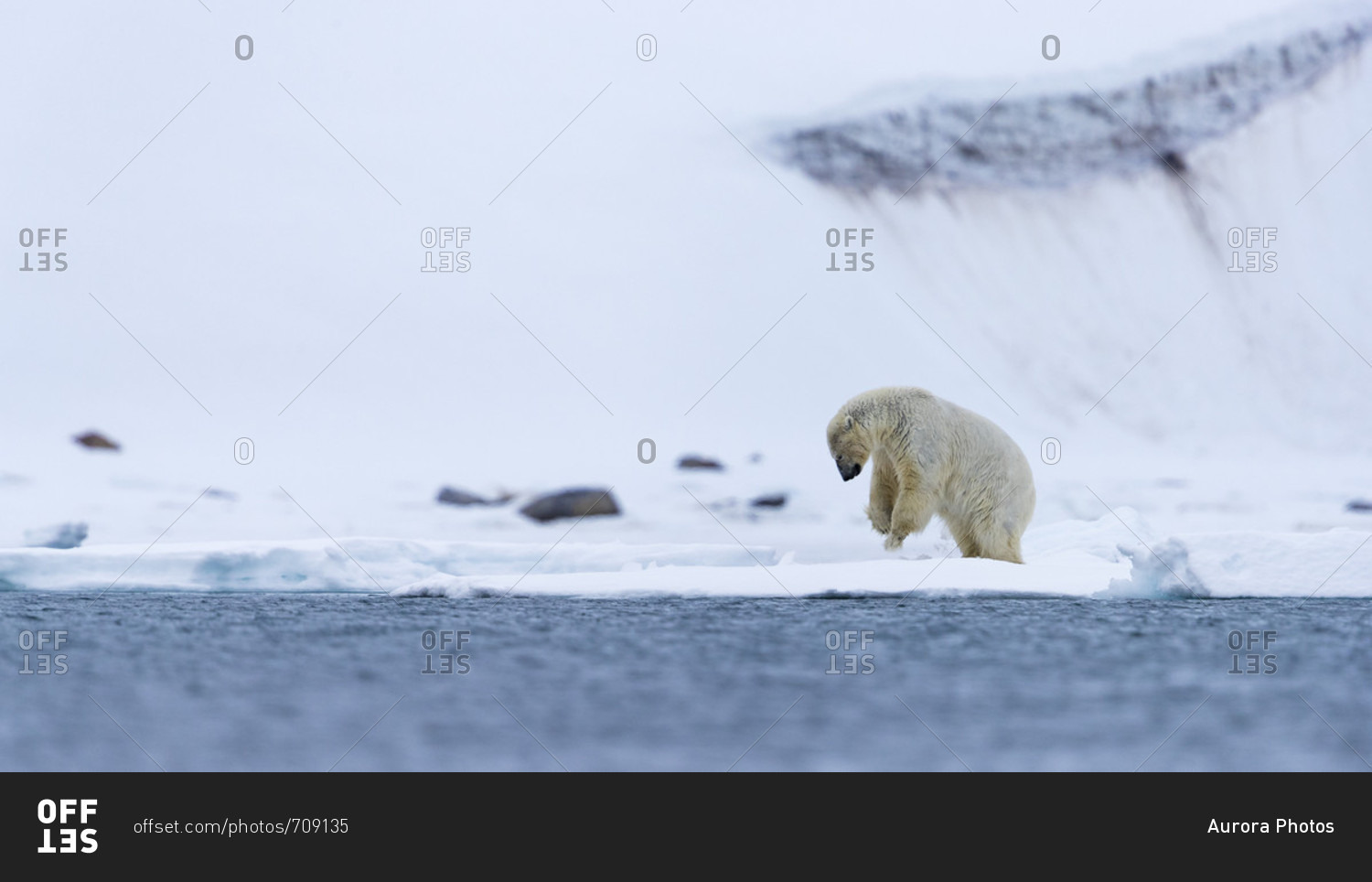 Polar bear (Ursus maritimus) on coastline of Arctic Ocean, Spitsbergen, Svalbard and Jan Mayen, Norway