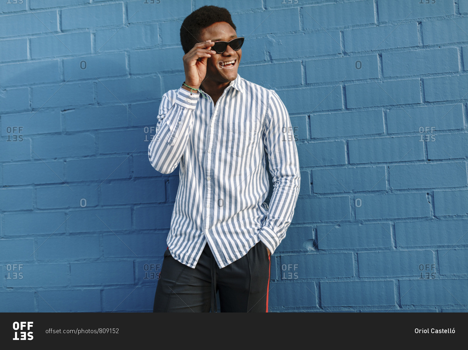 Portrait of a stylish black man wearing blue striped collared shirt