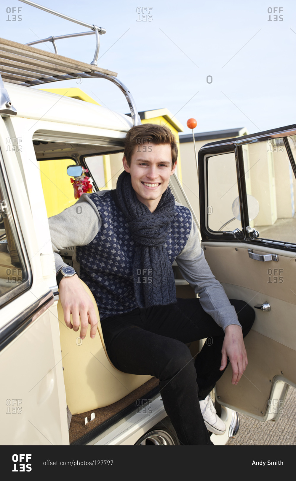 Portrait of a young boy sitting on front passenger seat