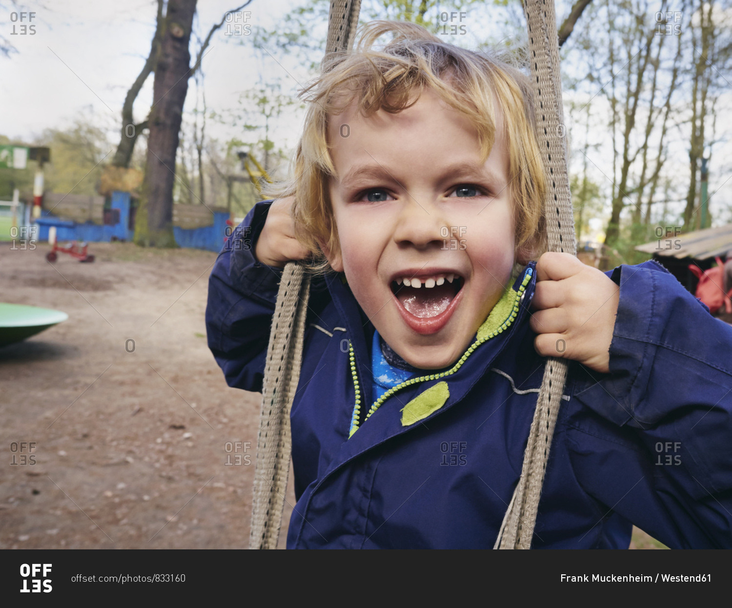 Portrait of screaming little boy on playground