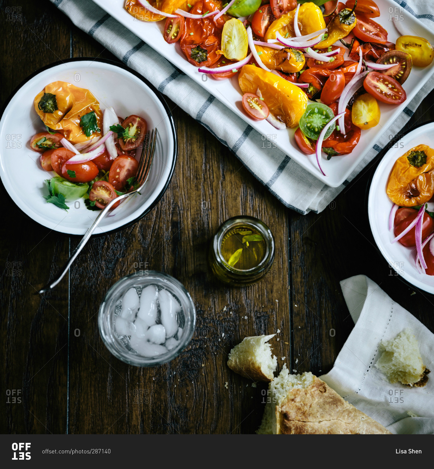 Roasted pepper and tomato salad being served