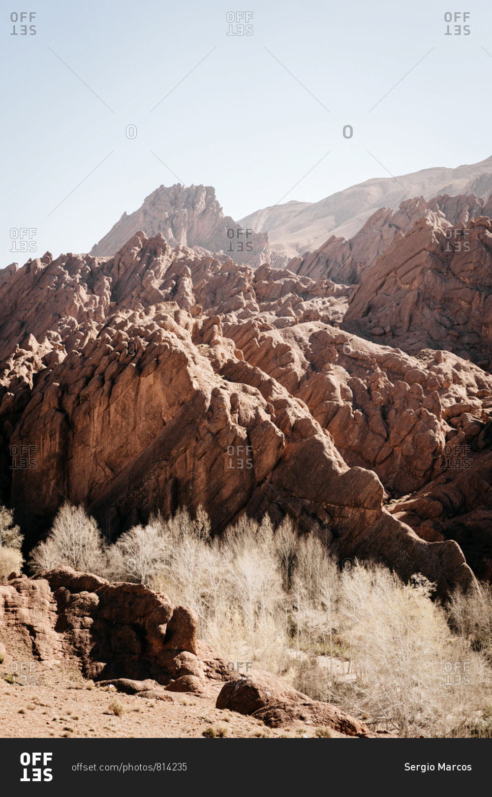 Rock textures at dawn in Dades Gorges, Morocco