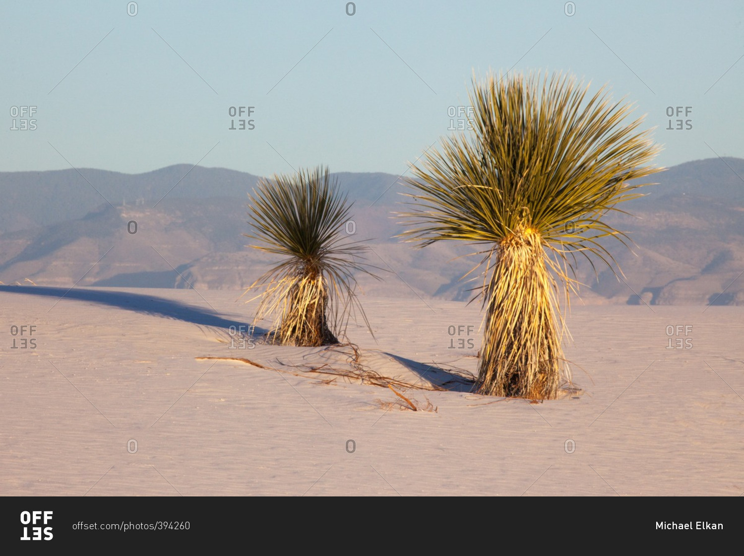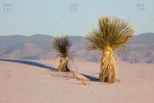 Sacramento Mountains and two yucca plants in White Sands National Monument