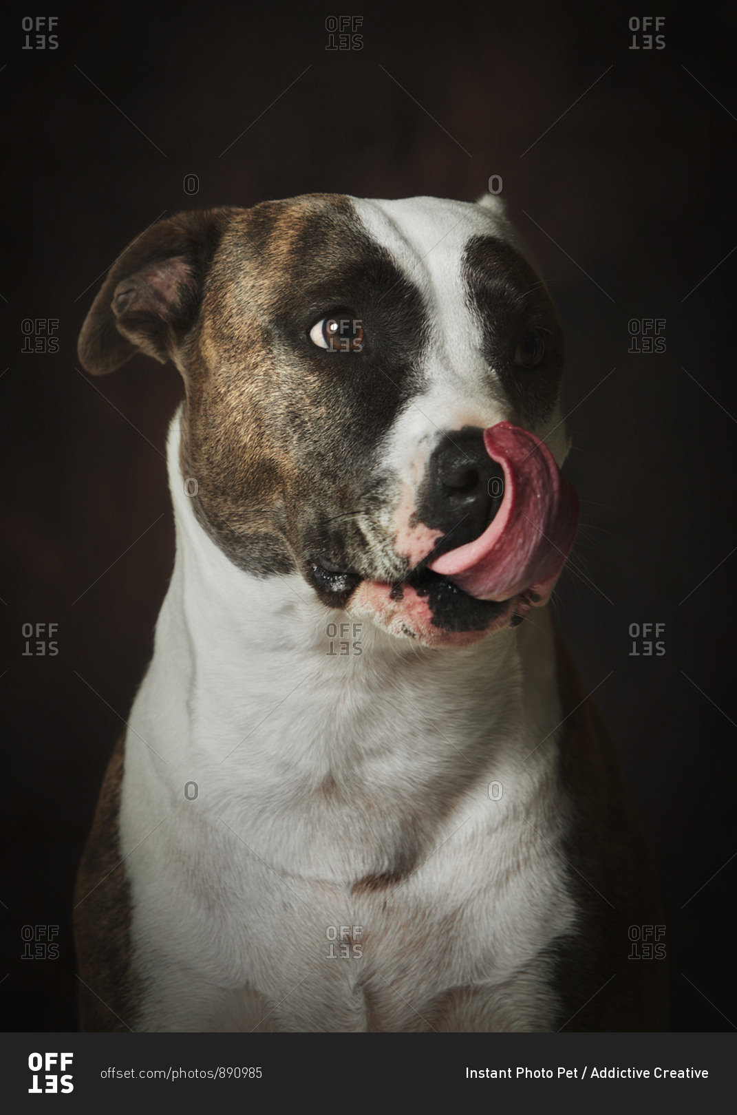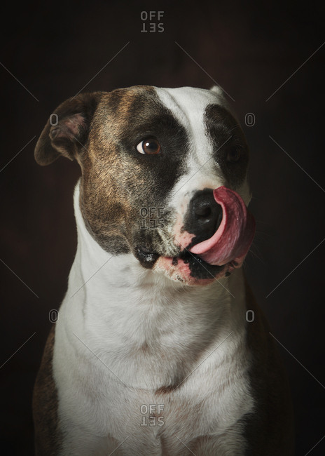 Strong attentive spotted Amstaff dog