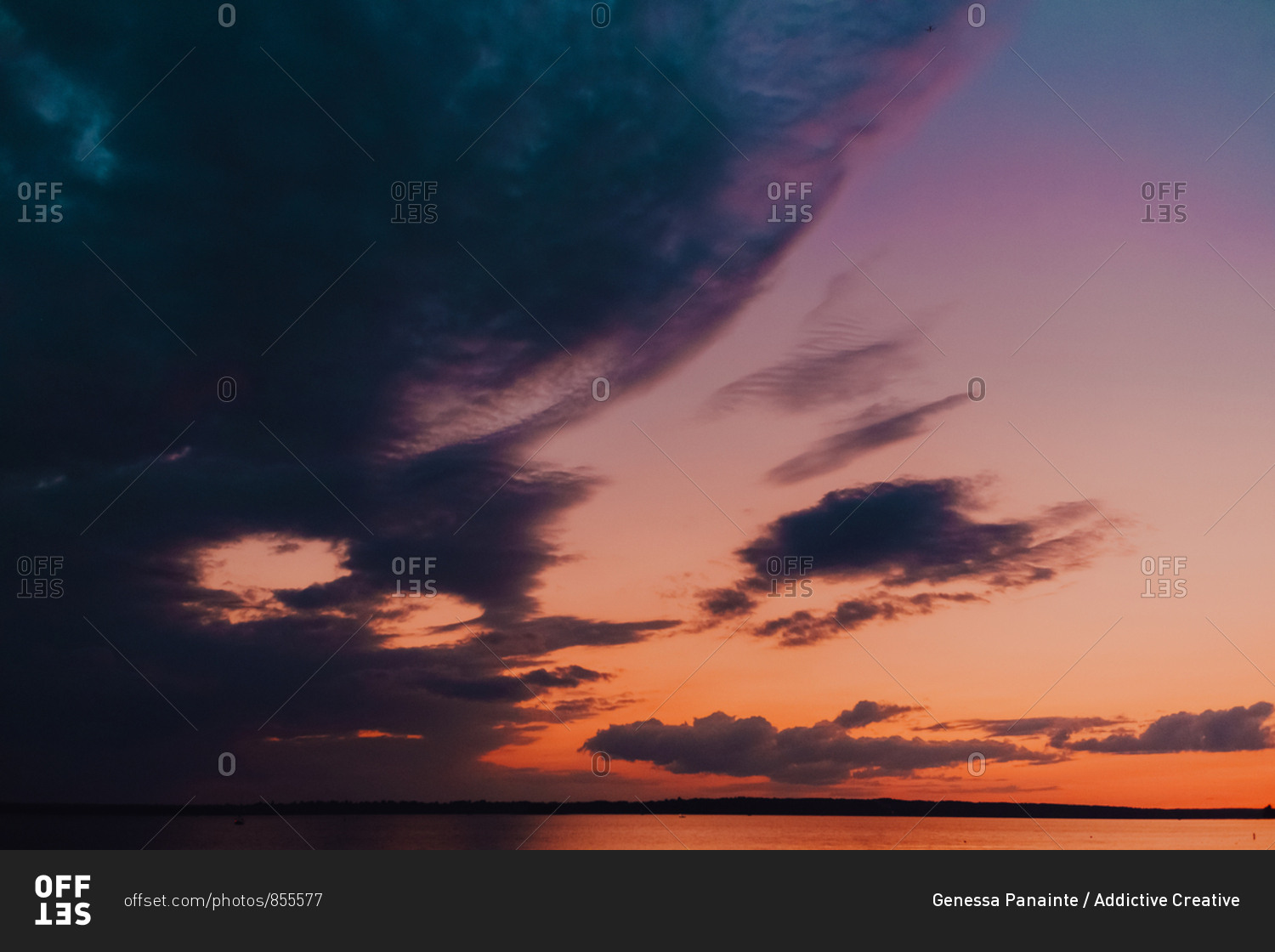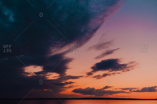 Stunning colorful sundown in warm summer evening reflecting lightly in sea surface
