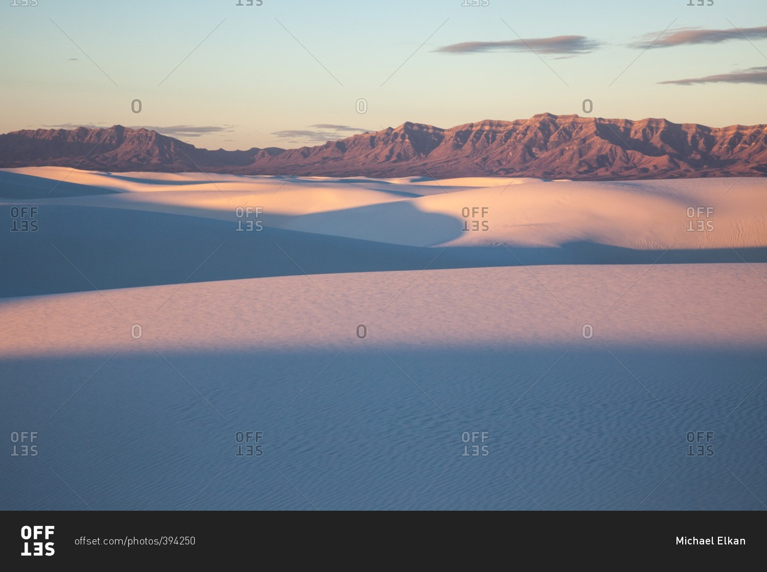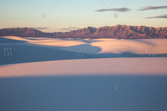 Sunrise and long shadows on dunes in White Sands National Monument