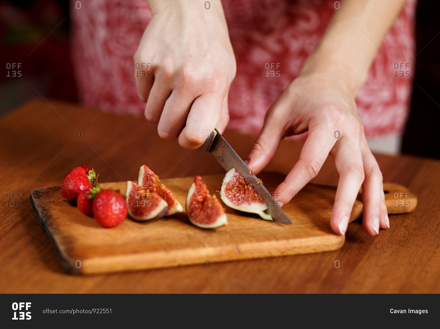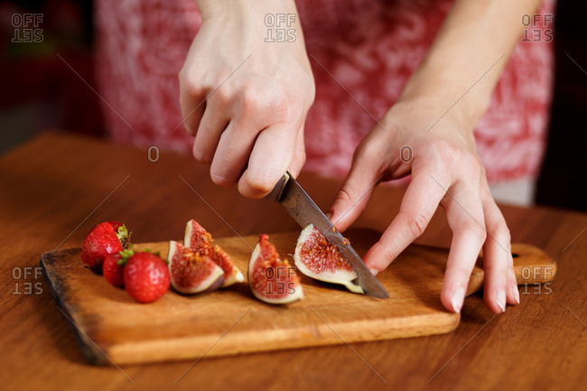 The tasty fruits such as strawberry and fig that are cut on slices