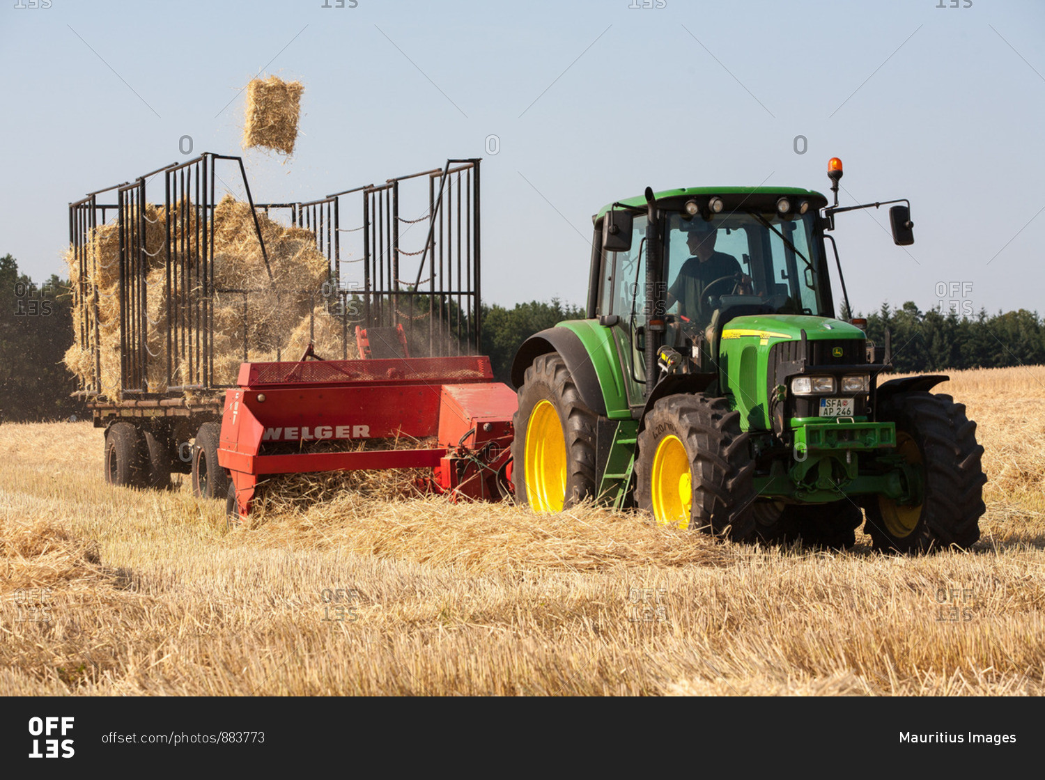 Tractor with straw press and catcher