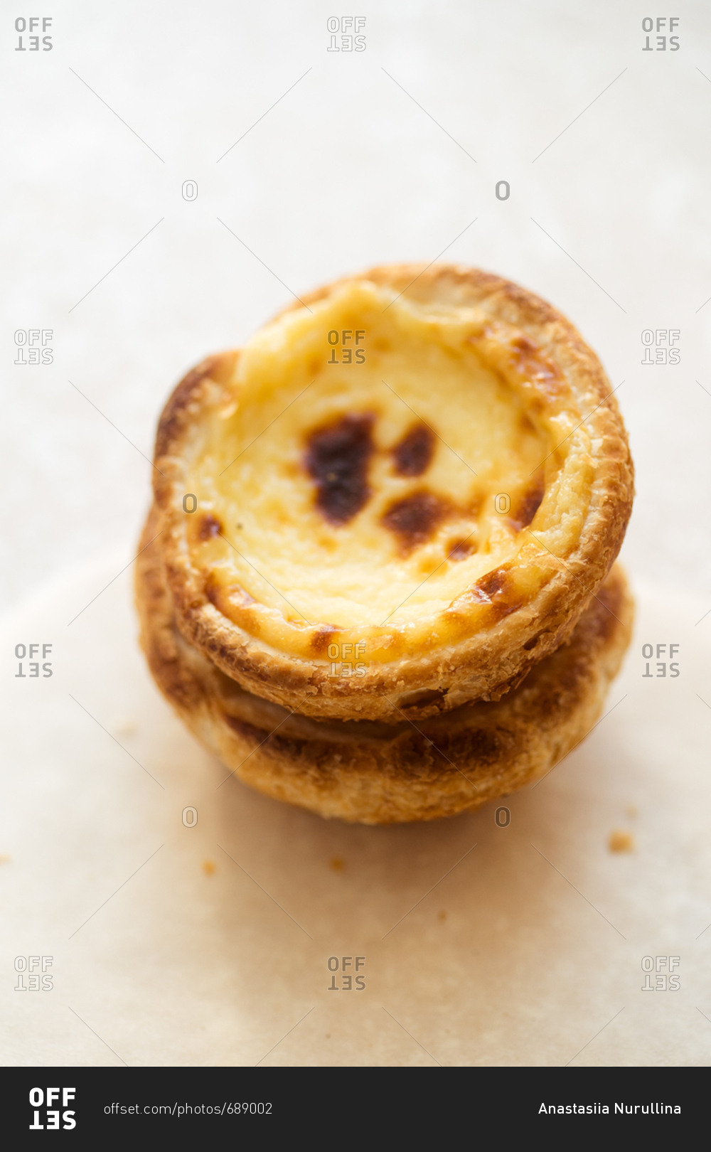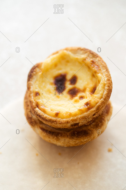 Traditional portuguese dessert pasteis de belem - baked puff pastry with custard