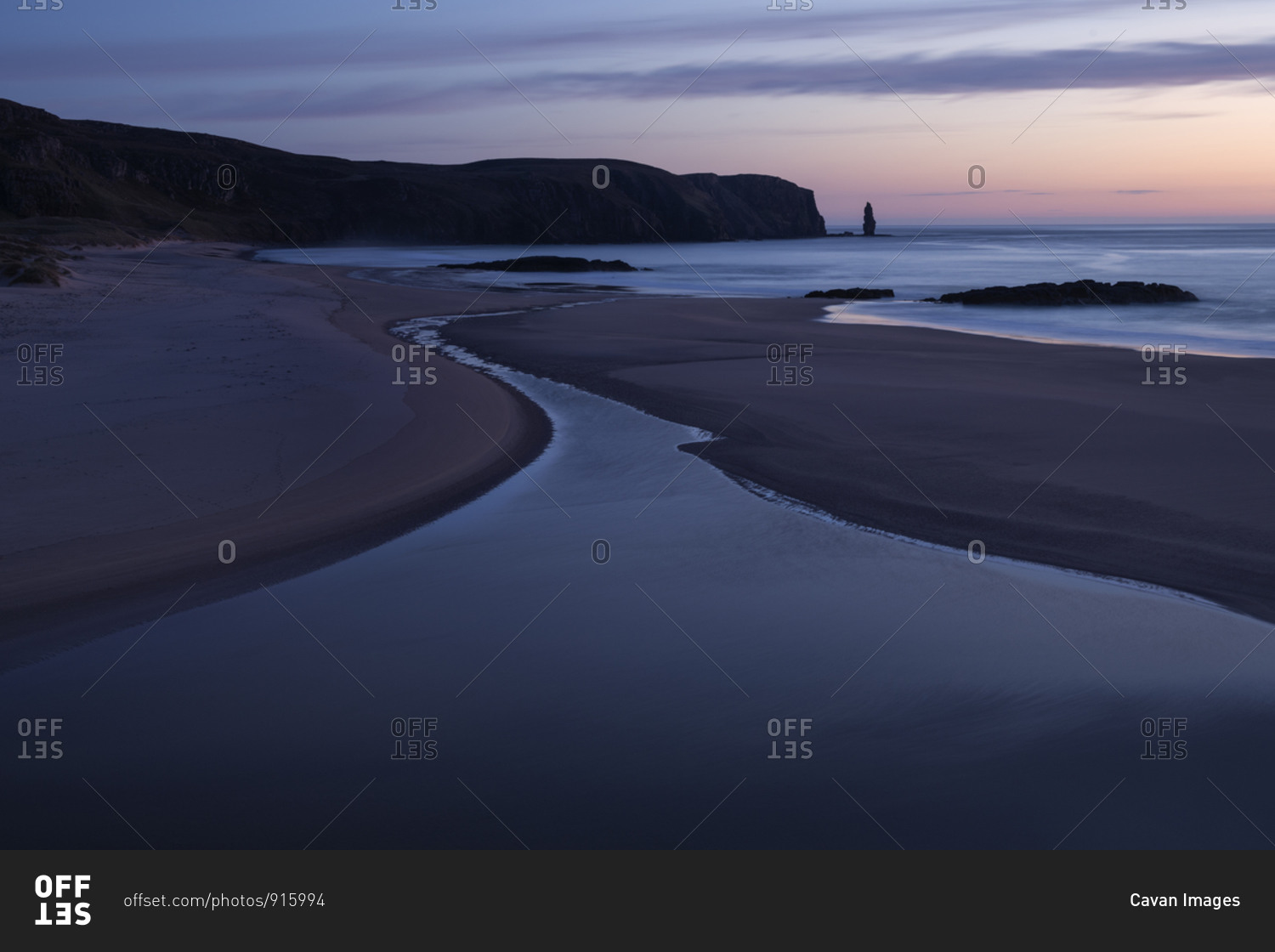 Twilight light over Isolated Sandwood bay beach, Sutherland, Scotland