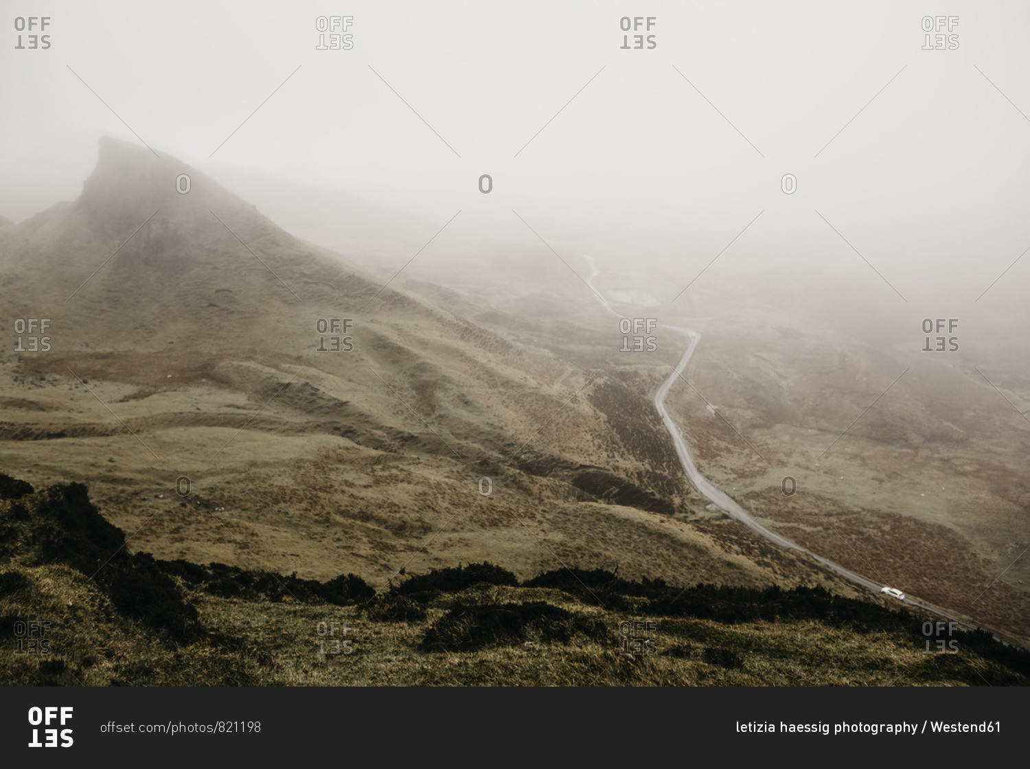 UK- Scotland- Isle of Skye- Quiraing Viewpoint- foggy landscape
