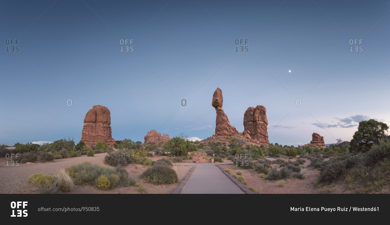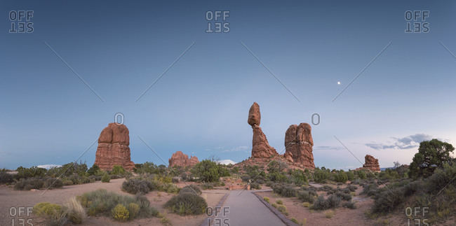 USA- Utah- Arches National Park- view to Balanced Rock at twilight