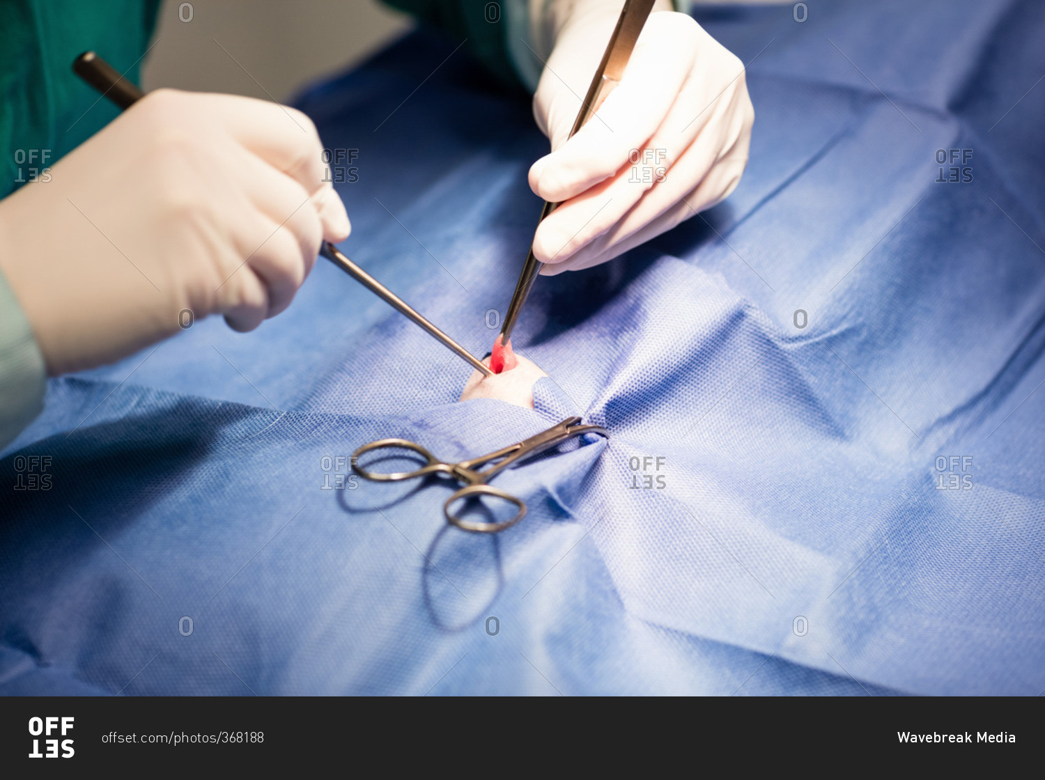 Vet performing an operation on a pet animal in clinic
