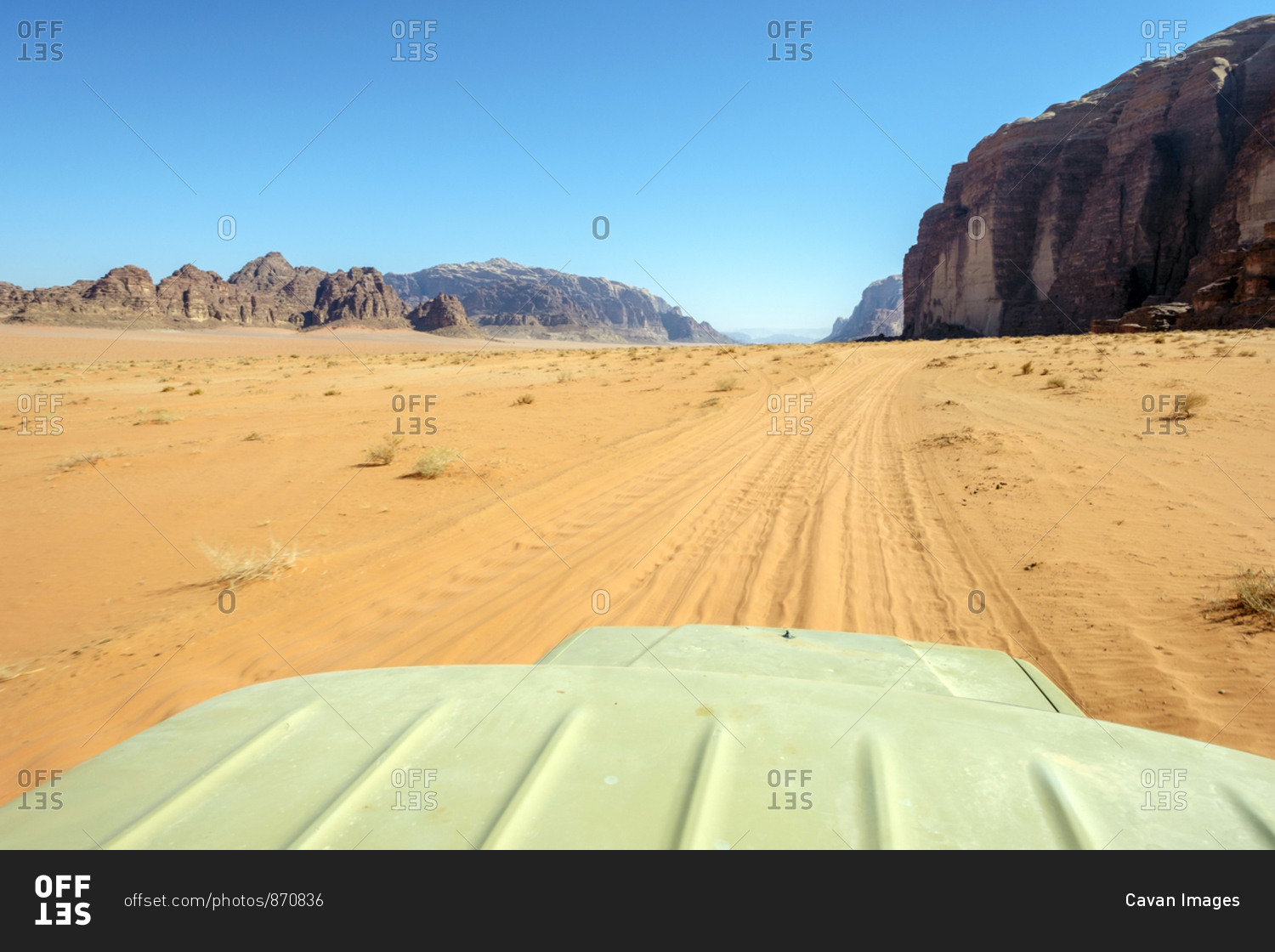 View from the roof of a four-wheel drive vehicle in wadi rum, jordan