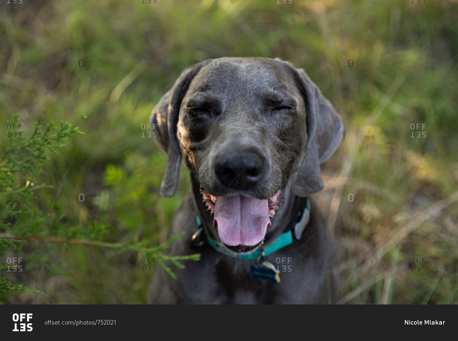Weimaraner dog in tall grass