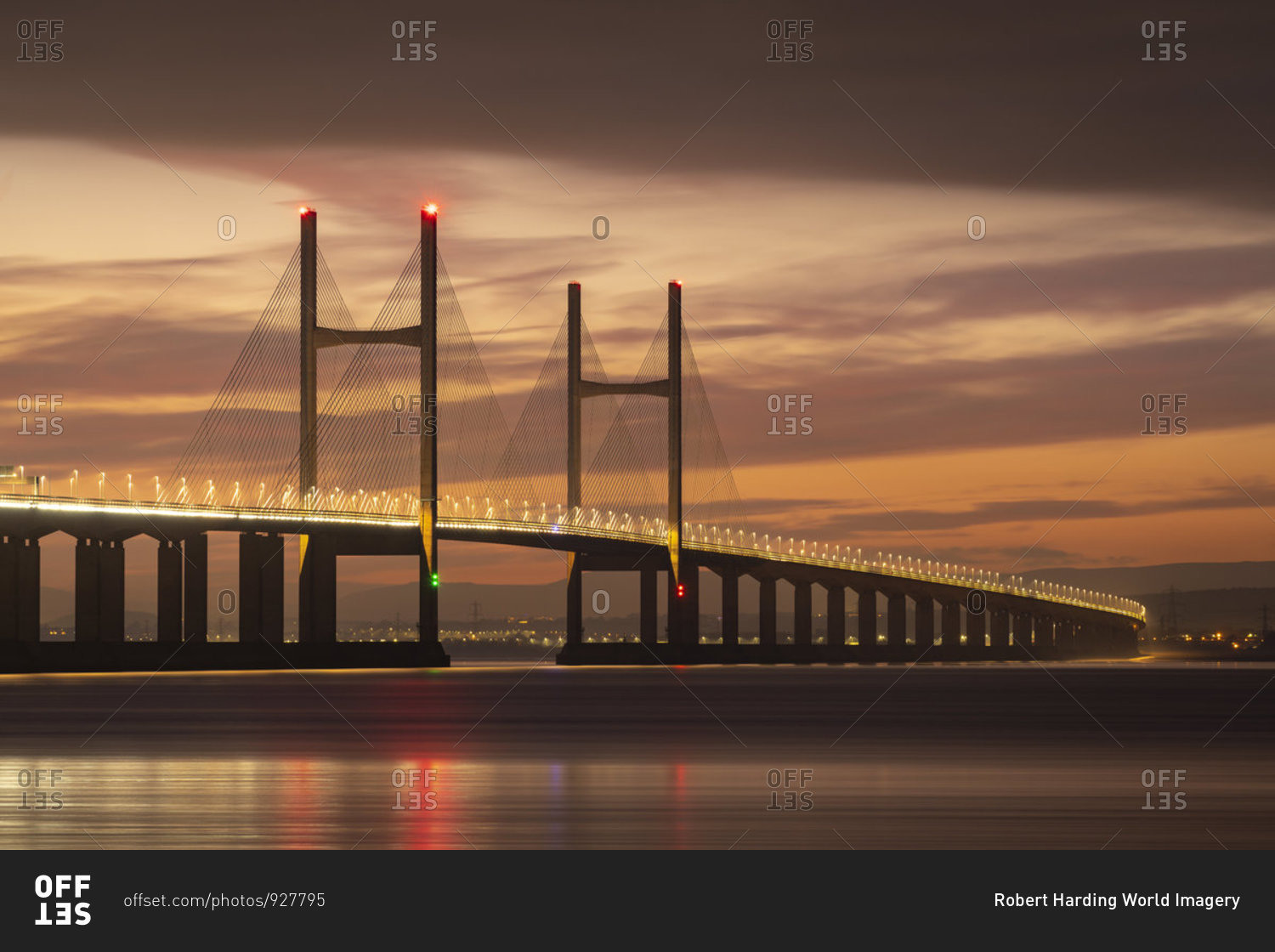 Winter twilight skies above the Prince of Wales Bridge spanning the River Severn, Gloucestershire, England, United Kingdom, Europe