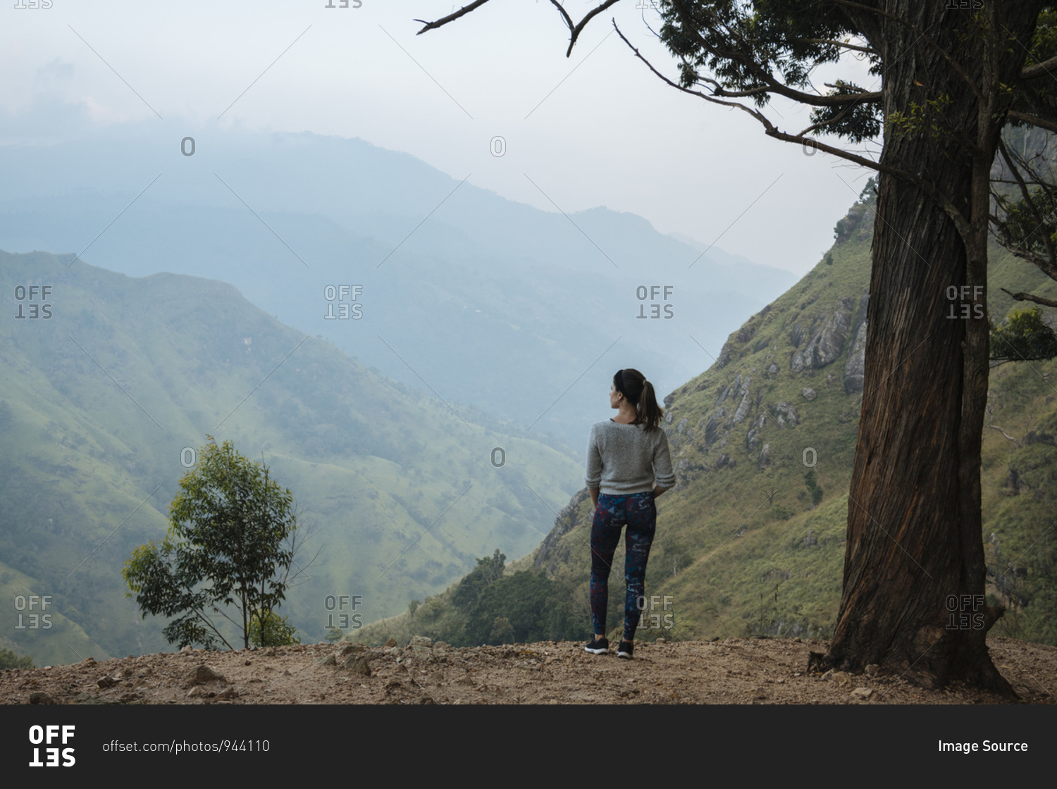 Woman enjoying view on hilltop, Ella, Uva, Sri Lanka