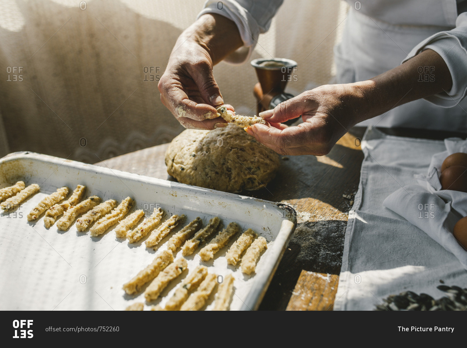 Woman Preparing Homemade Dough in the Kitchen and using a mincing machine. Preparation Raw Dough for Baking