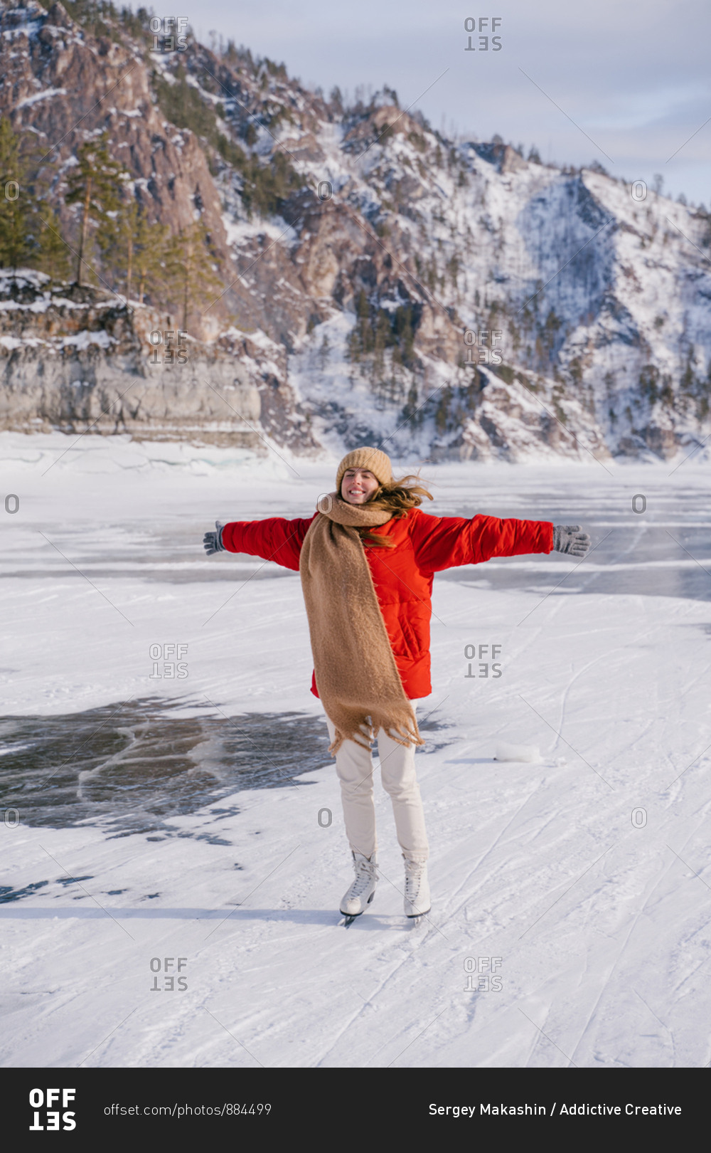 Woman skating on frozen river
