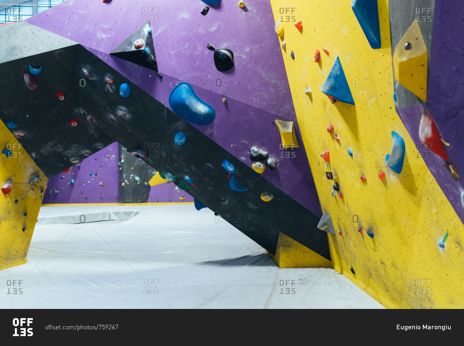 Young adult man and woman preparing with rope for climbing wall - exercise, preparation, sport concept
