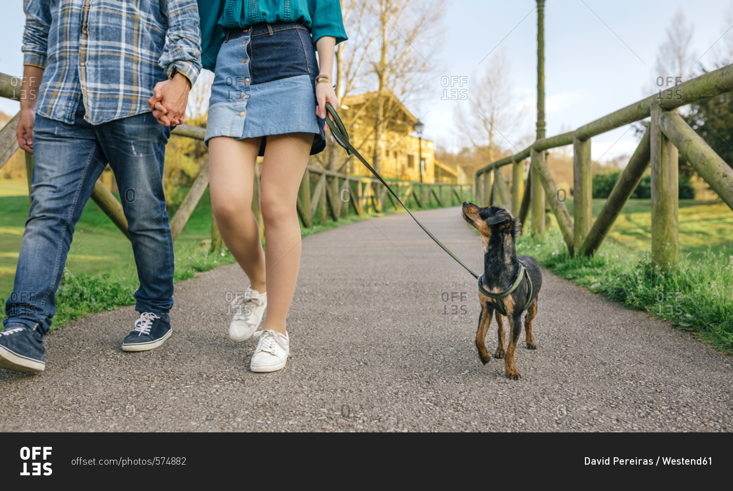 Young couple going walkies with dog- partial view