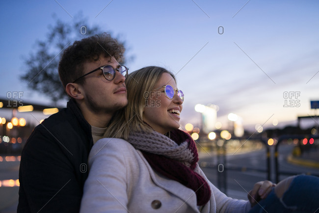 Young couple in love at evening twilight