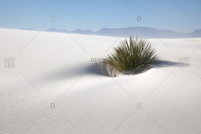Yucca plant in sand storm in White Sands National Monument